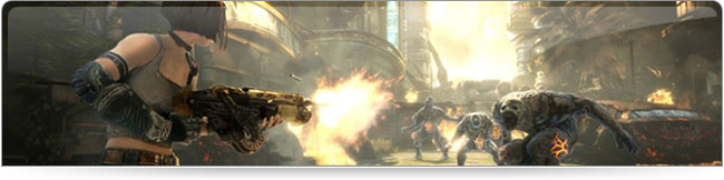 Avec un logo Epic sur le dos, on attendait Bulletstorm de pied ferme sur le terrain miné de l’excellence graphique. Le constat est partagé, en particulier à cause d’un affichage des textures souvent parti en vacances (à ce niveau là on ne parle plus de retard). Pire, les textures des personnages principaux se révèlent assez grossières. Heureusement que l’action ne pousse pas à la contemplation du détail ! En revanche, les environnements sont tous très réussis et leur variété surprend. C’est un vrai plaisir de se battre au soleil sous les palmiers ! L’animation elle aussi est rarement mise à défaut et l’ensemble reste presque toujours fluide, y compris lors de certaines séquences d’affrontements dantesques. Pour ne pas vous spoiler le plaisir de les découvrir, nous n’en dirons pas plus, mais on ne peut que saluer les efforts de variété de la mise en scène du jeu. On ne peut pas en dire autant de l’arsenal mais la présence d’un puissant tir secondaire assez différent pour chacune des sept armes garanti pas mal de tactiques, même si on aura tendance à répéter les mêmes enchaînements ultra efficace en terme de points.