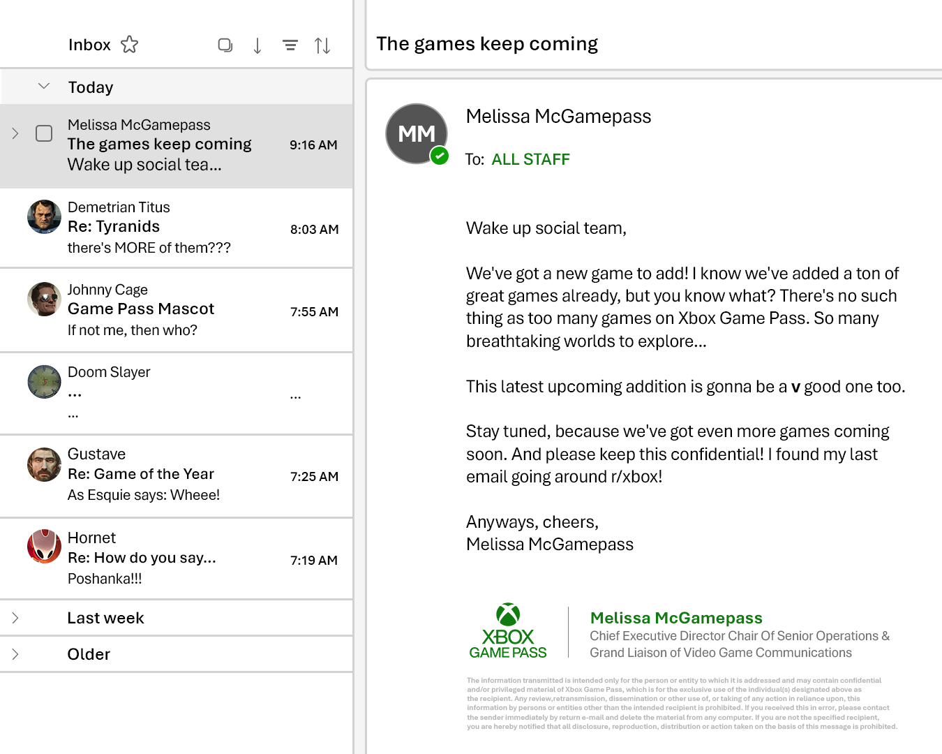 Et cela ne devrait pas être le seul jeu du studio polonais CD Projekt Red à rejoindre le service de jeux à la demande du constructeur américain puisqu’un nouveau teasing vient d’apparaitre sur les réseaux sociaux. Comme elle l’a fait avant l’arrivée de Kingdom Come Deliverance 2 il y a deux semaines, la salariée fictive a partagé un nouveau message qui laisse peu de place au doute.